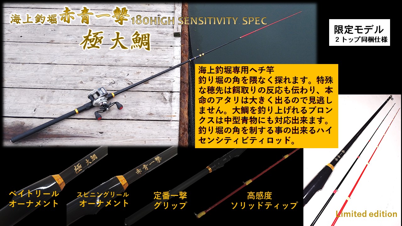 【海上釣堀赤青一撃 極大鯛】海上釣堀専用ヘチ竿、釣り堀の角を隈なく探れます。